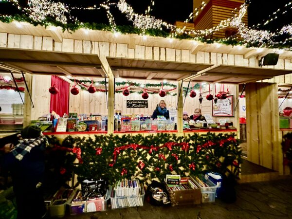 Die Schulfamilie am SGF nimmt mit Begeisterung seit über 40 Jahren am Karitativen Christkindlesmarkt in Friedberg teil und verkauft Bücher, DVDs, CDs, Spiele und von Schülerinnen und Schülern erstellten Naturseifen für einen guten Zweck. Die Einnahmen gehen an die Projekte der Pallottiner in Afrika und Asien.