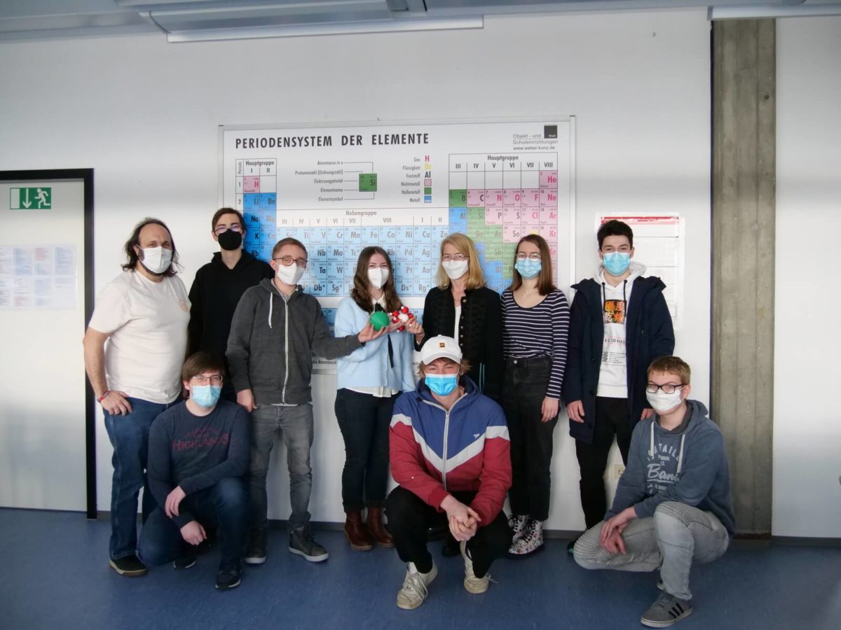 Wieso bei 2D bleiben, wenn man auch 3D haben kann? Genauso motiviert starteten wir in unser P-Seminar, stellten jedoch schnell fest, dass wir mit dem alten 3D-Drucker nicht weit kommen. Ein neuer musste her! Dank Sponsor und Internet gelangten wir im Nu an ein funk-tionstüchtiges Modell. Nun fehlte es nur noch an einer Idee für ein Projekt. Max V. hatte sie! Was wäre besser als ein Fortnite-Schlüsselanhänger in glow-in-the-dark-grün? Genau! Ein Modellbausatz für die Chemiefachschaft! Rot, grün, weiß sind die Farben von den Modellku-geln Sauerstoff, Chlorid, Wasserstoff und Natrium. Zusammenschraubbar sind sie flexibel ein-setzbar für den Unterricht. Hoffentlich bereiten sie zukünftigen Chemieklassen viel Freude und Vergnügen beim Lernen.