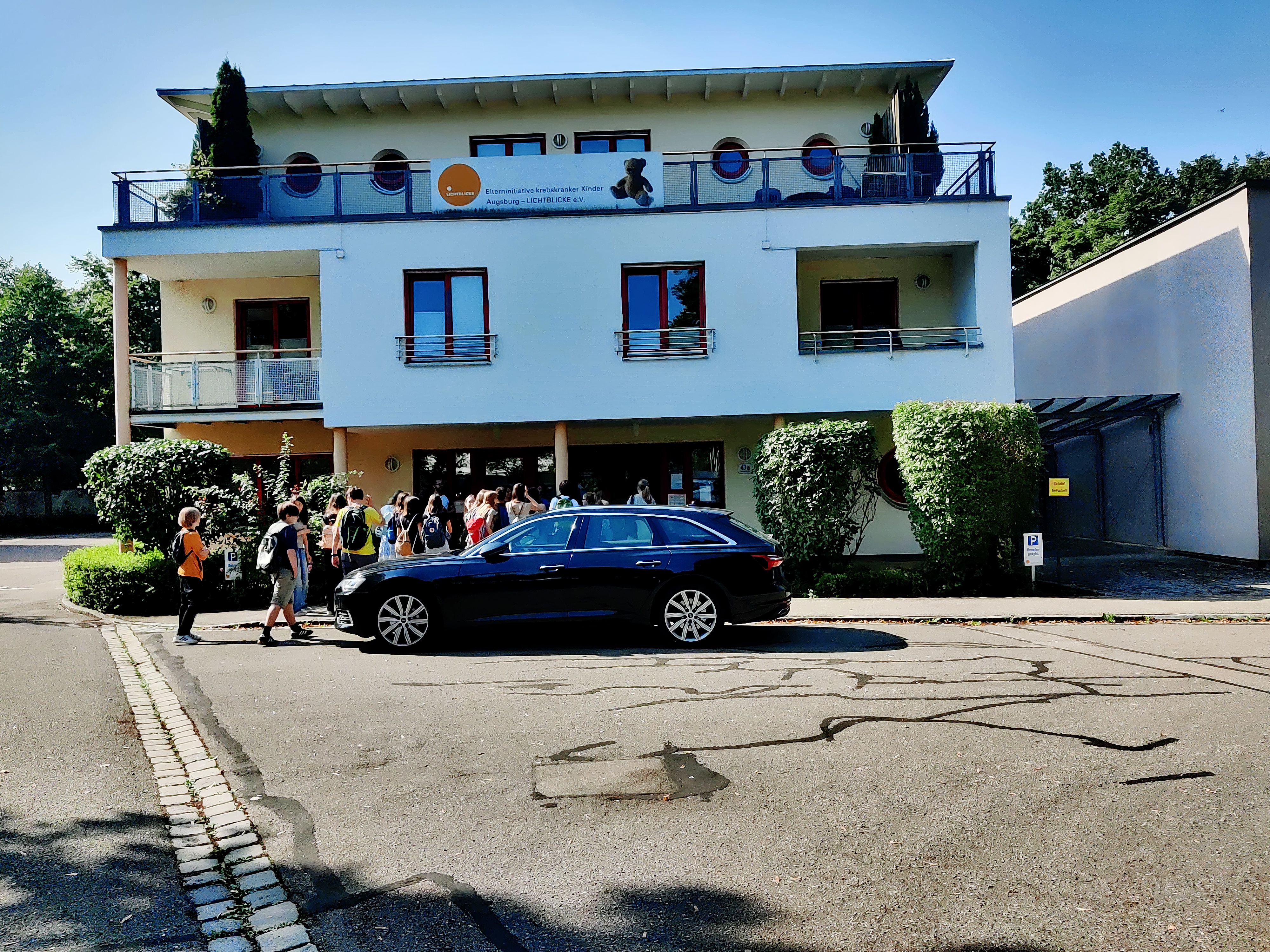 Aufgrund der Initiative des Klasse 7a, einen Restbetrag aus den Einnahmen beim Klassenkonzert an eine Organisation für krebskranke Kinder zu spenden, besuchte die Klasse am 18. Juli 2024 gemeinsam mit ihren Lehrern Stefan Immler und Johannes Krenz die Elterninitiative „Lichtblicke“ beim Universitätsklinikum Augsburg. Diese Elterninitiative betreut ein Elternhaus, in dem Eltern und Geschwister von krebskranken Kindern untergebracht sind.