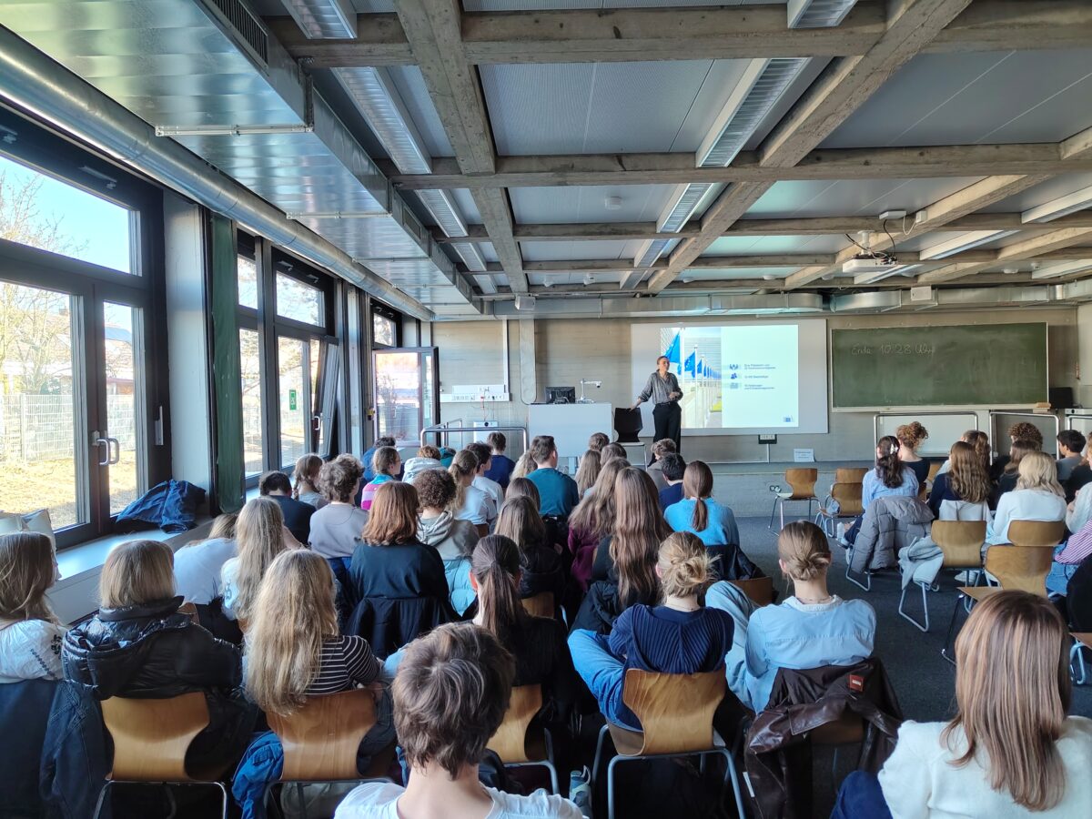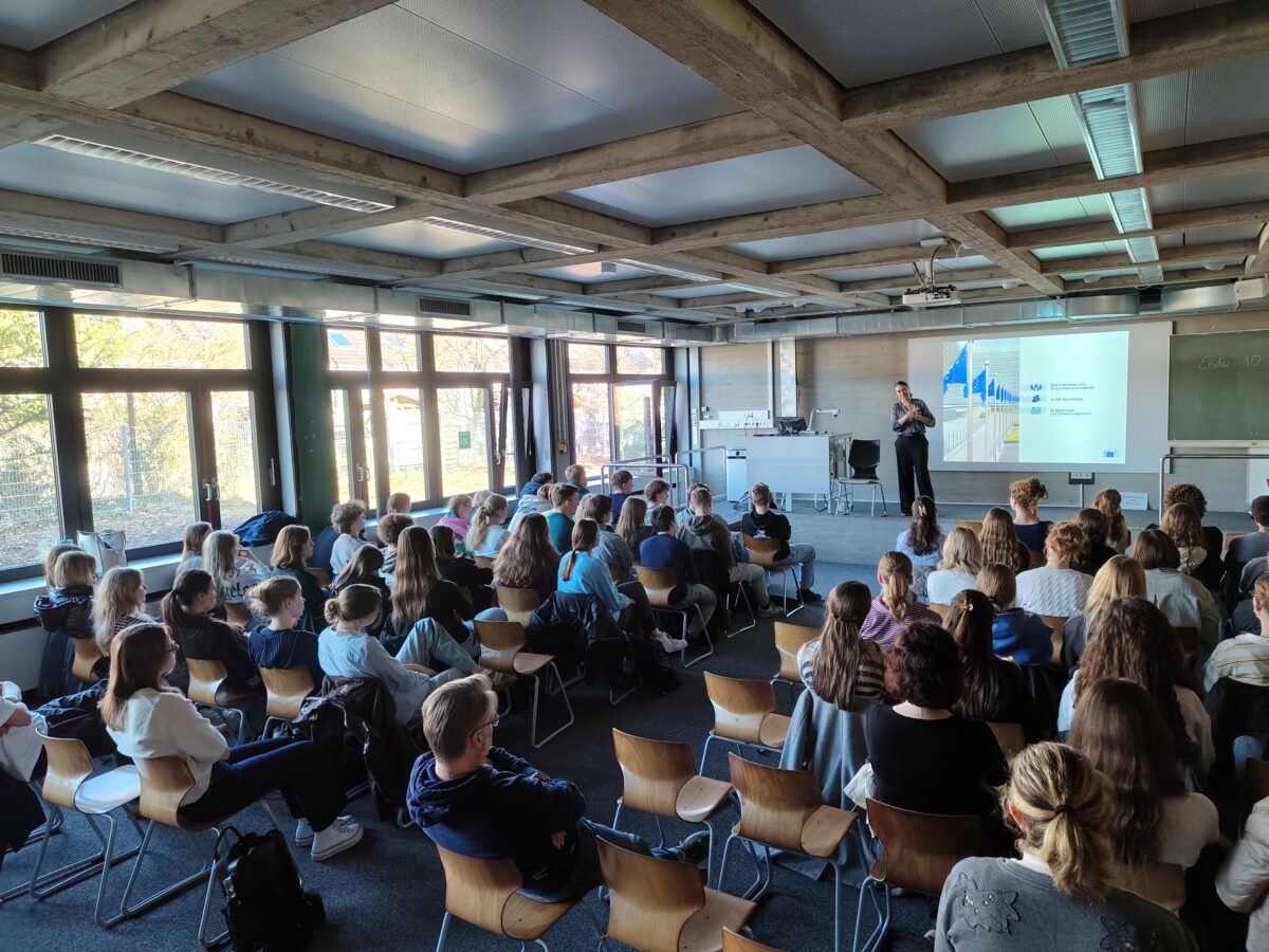 Besonders interessant und aufschlussreich war die anschließende Fragerunde, in der die Zuhörerinnen und Zuhörer Fragen zur EU, der aktuellen (geo-)politischen Lage und der europäischen Zukunft stellten. Von Frau Obst erhielten sie Antworten, die nicht nur informativ waren, sondern die Schülerinnen und Schüler selbst zum Denken anregten.