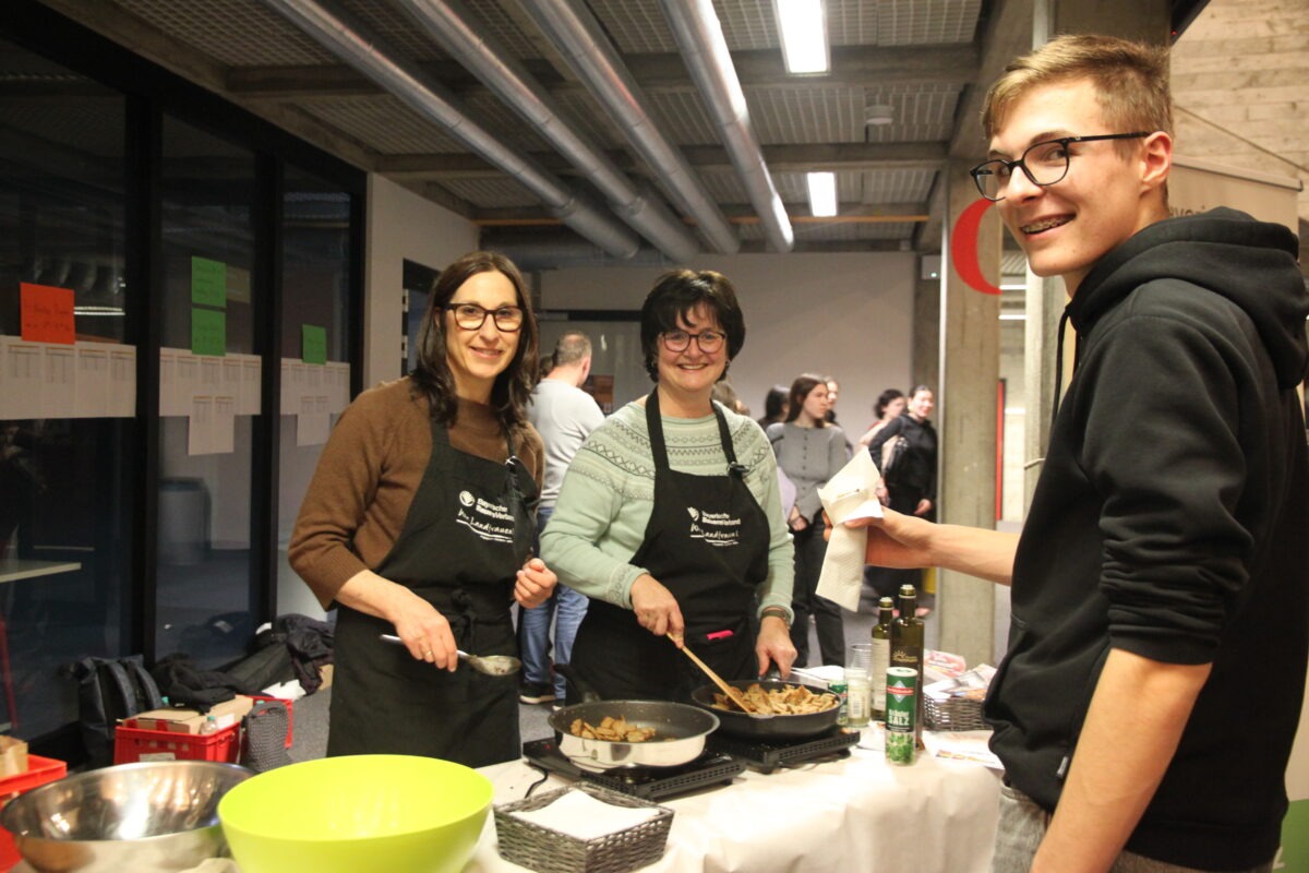Zwölf ehrenamtliche Ausstellende waren am Abend des 24. Februar 2026 ins Schulhaus gekommen, darunter der LBV – Landesbund für Vogel- und Naturschutz, die AOK Bayern sowie die Initiative Stadtradeln des Landratsamts. Sie informierten Schülerinnen und Schüler ab Jahrgangsstufe 10, Eltern, Lehrkräfte und weitere Interessierte über konkrete Möglichkeiten, selbst aktiv zu werden: vom Bau geeigneter Insektenhotels über ehrenamtliche Tierbeobachtungen bis hin zum bewussten Konsum fair gehandelter Produkte oder dem Umstieg auf klimafreundliche Verkehrsmittel. Die Landfrauen präsentierten ihr „Genusskisterl“ mit Rezepten gegen Lebensmittelverschwendung – Kostproben inklusive.