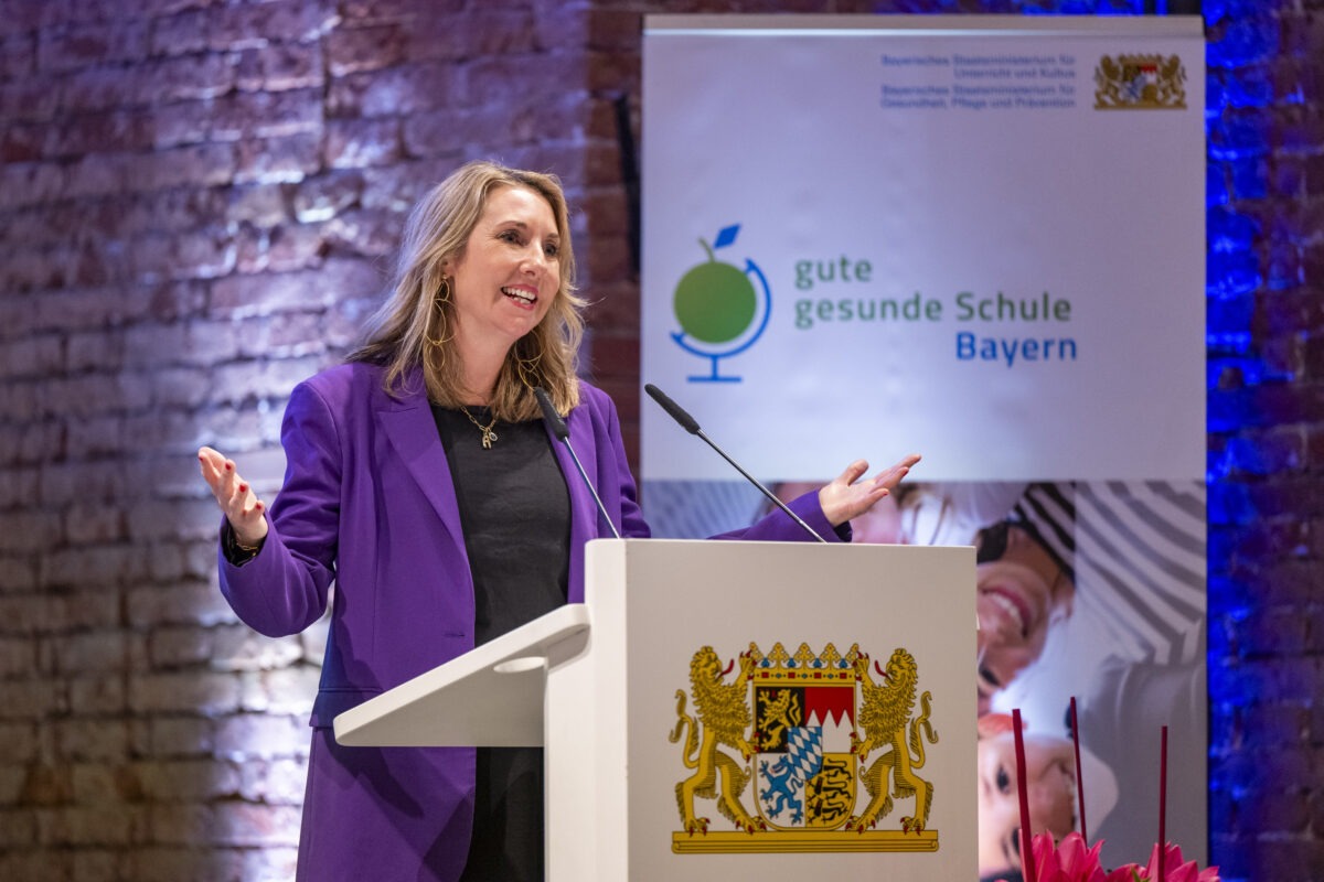 Am 12. November 2024 wurde unserer Schule in der Allerheiligen-Hofkirche der Münchner Residenz die Auszeichnung „Gute gesunde Schule Bayern“ verliehen. Diese Ehrung, überreicht von der bayerischen Kultusministerin Anna Stolz und der bayerischen Gesundheitsministerin Judith Gerlach, würdigt unser Engagement für Gesundheitsförderung und Prävention. Ziel ist es, einen gesundheitsbewussten Schulalltag für unsere Schülerinnen und Schüler zu schaffen.