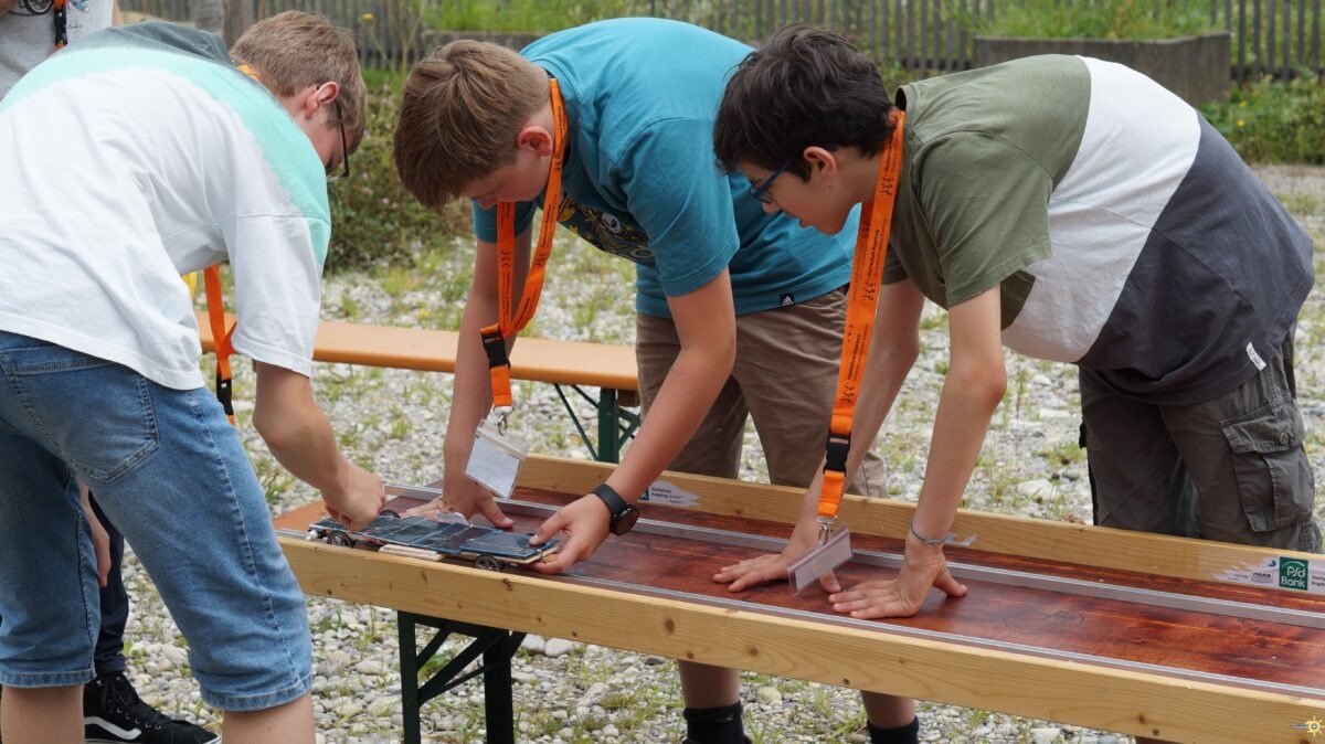 Am 11. Juli machten sich drei Teams unserer Schule auf den Weg ans Umweltbildungszentrum Augsburg um bei „SolarMobil Augsburg“ ihre ingenieursmäßige Teamleistung unter Beweis zu stellen. Wieder einmal galt es, das schnellste – und haltbarste – selbstgebaute Solarauto zu entwerfen. Ganz im Sinne einer nachhaltigen Konstruktionsweise war es dabei vorgegeben, Holz als Material für Chassis und Struktur zu nutzen, in die die zum Teil vorgegebenen Technikkomponenten dann geeignet einzubetten waren.
