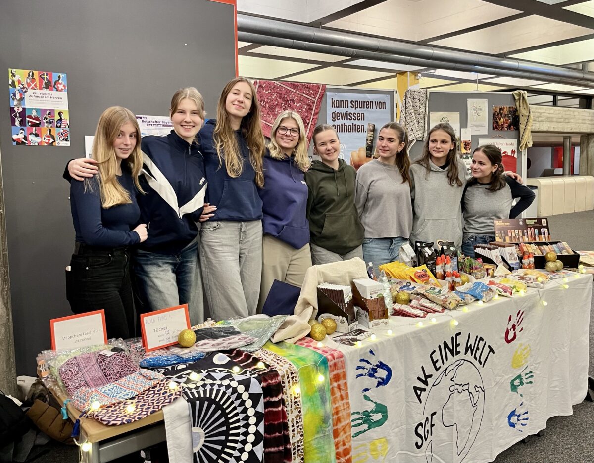 Auch dieses Jahr organisierte der AK Eine Welt zusammen mit dem P-Seminar Geographie von Frau Asmussen einen Verkaufsstand am Elternabend. Um Spenden für das Partnerprojekt Pradip in Indien, Kalkutta zu sammeln, wurden vom P-Seminar kreative Weihnachtskarten gestaltet, die gegen Spenden abgegeben wurden. Außerdem verkauften wir an unserem vorweihnachtlich geschmückten Stand die „Gute Schokolade” und eine große Palette an Fairtrade-Produkte aus dem Eine Welt Laden Friedberg. Die Spenden kommen jungen Frauen und Kindern in Kalkutta zugute, um ihnen dort ein unbeschwerteres Leben zu ermöglichen.