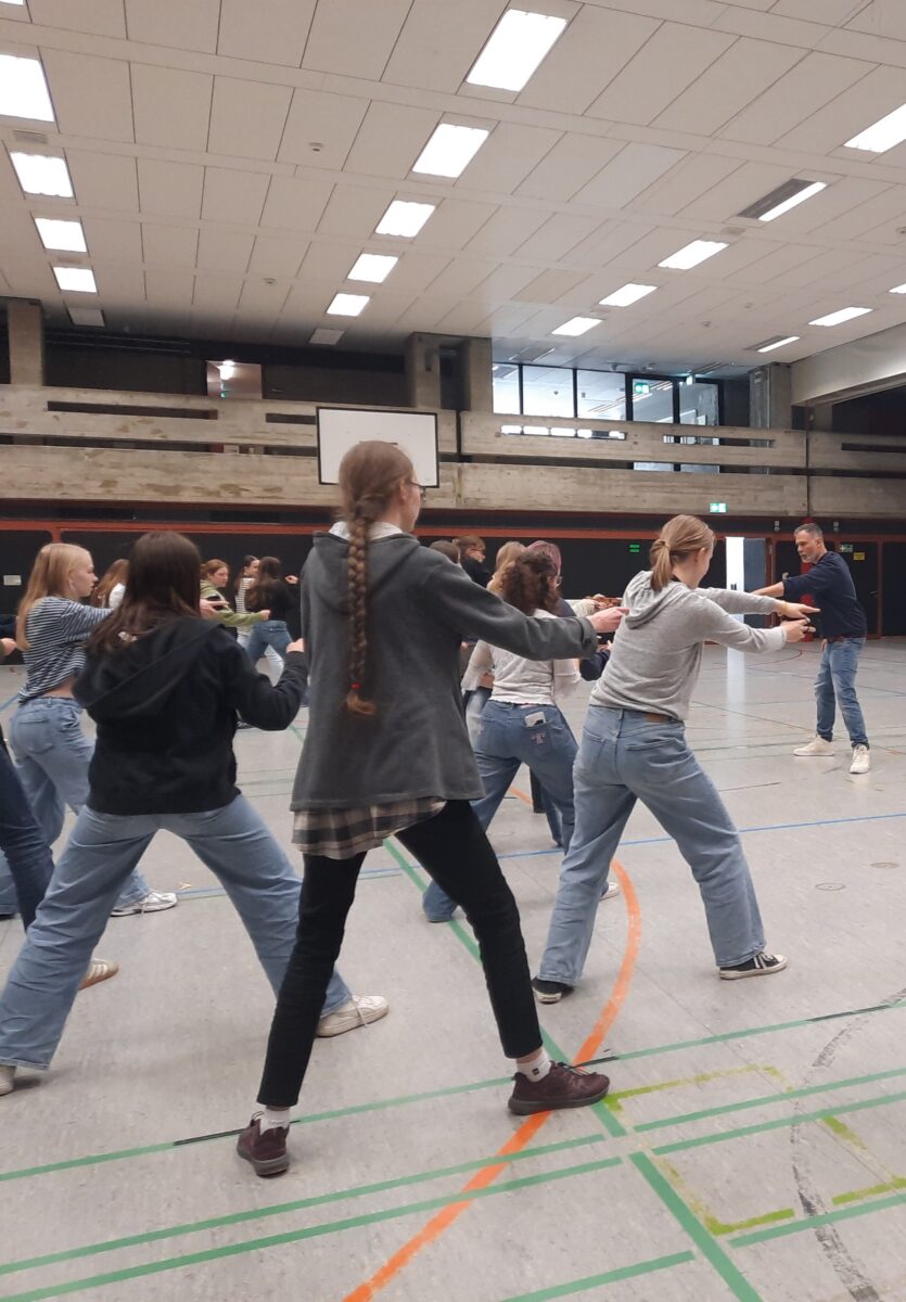 Der Körper ist das Instrument des Schauspielers, erklärte Volkram Zschiesche, ausgebildeter Theater- und Filmdarsteller, den Schülerinnen und Schülern zu Beginn des Workshops am Nachmittag des 22.4.
