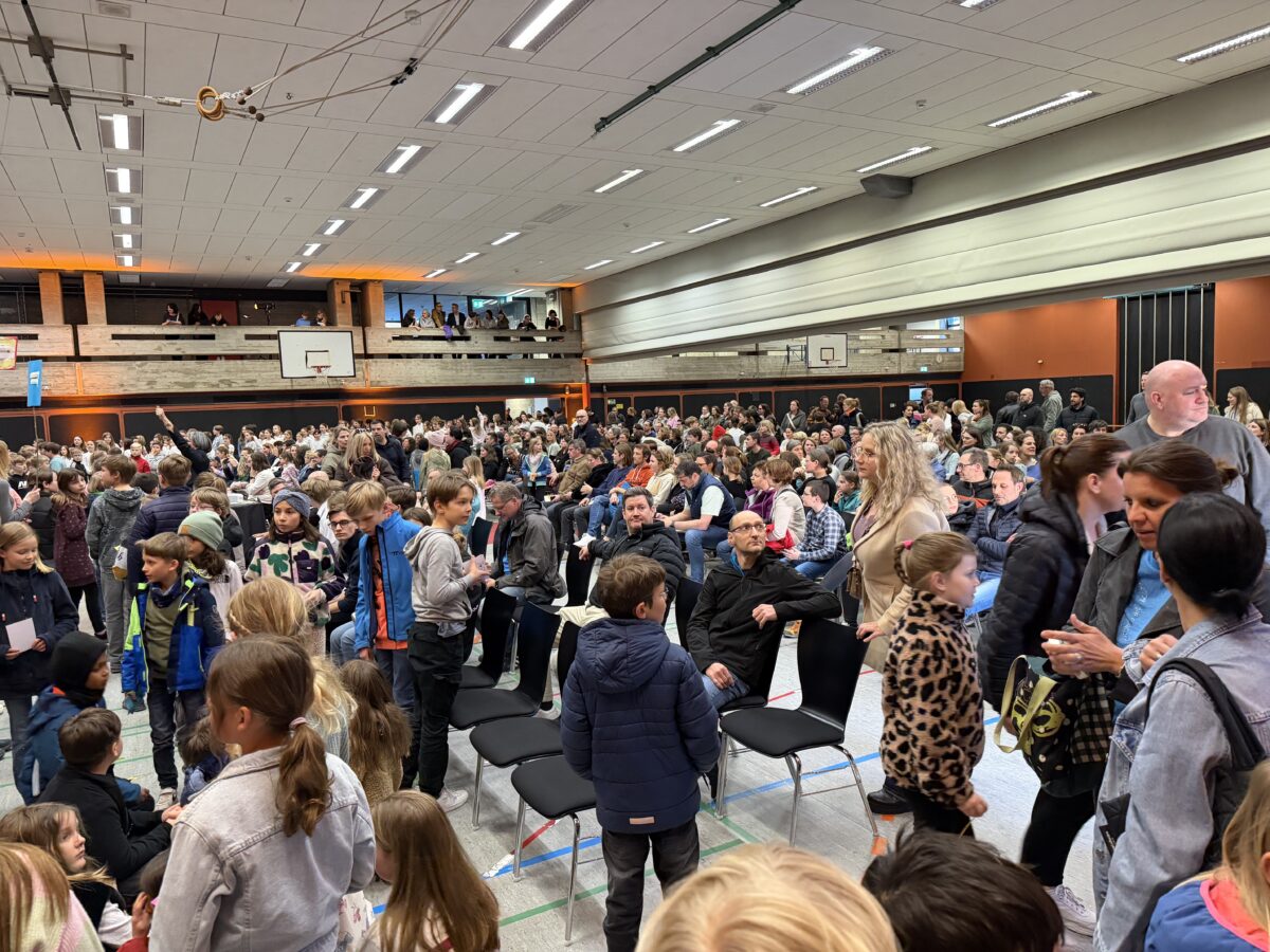 Etwa 221 Viertklässlerinnen und Viertklässler haben sich dafür am 19.03.26 mit ihren Eltern in der Sporthalle eingefunden, als Schulleiterin Ute Multrus die Veranstaltung gegen 18.00 Uhr eröffnet. Während sich die Erwachsenen in einer etwa 90-minütigen Veranstaltung mit Beiträgen von Schulleitung, SMV, Technikteam, Elternbeirat, Verein der Freunde und Netzwerkgruppe über Schulprofil, Angebote und Organisation informieren, ziehen die Kinder in kleinen Gruppen durch das Schulhaus. Begleitet von Tutorinnen und Tutoren erleben sie Unterricht ganz konkret als Mitmachprogramm.